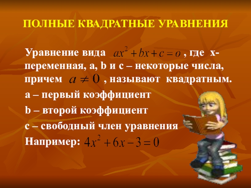 ПОЛНЫЕ КВАДРАТНЫЕ УРАВНЕНИЯУравнение вида