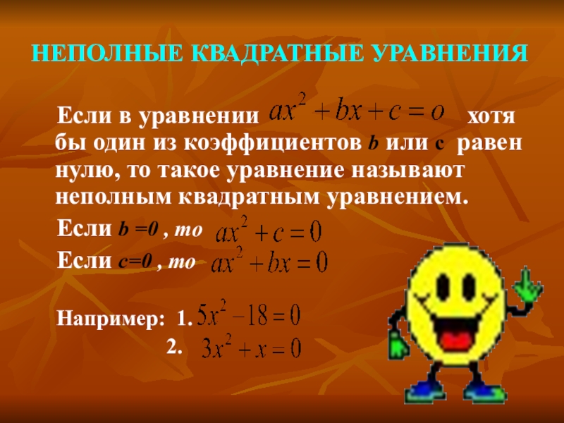 НЕПОЛНЫЕ КВАДРАТНЫЕ УРАВНЕНИЯЕсли в уравнении