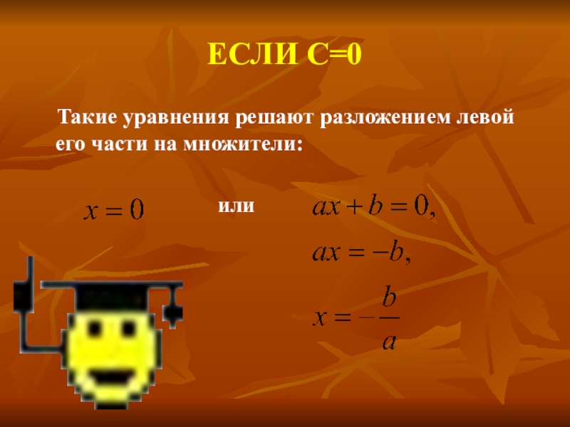 ЕСЛИ С=0Такие уравнения решают разложением левой его части на множители: