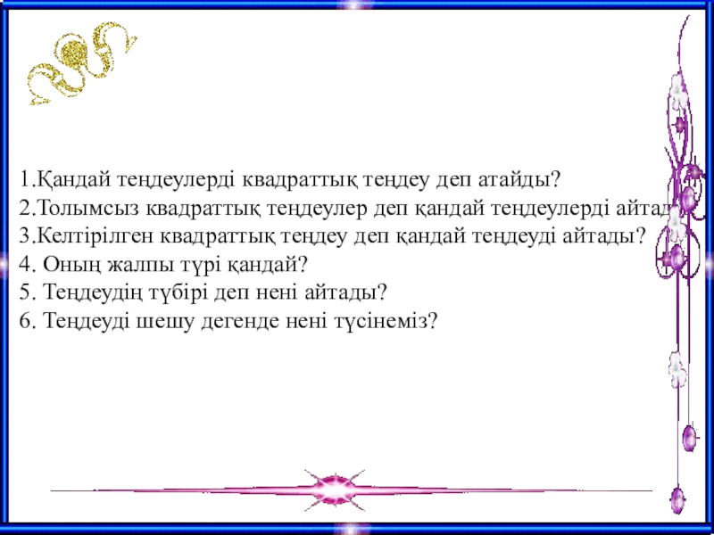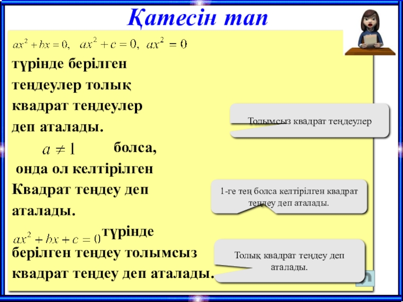 1-ге тең болса келтірілген квадрат теңдеу деп аталады.