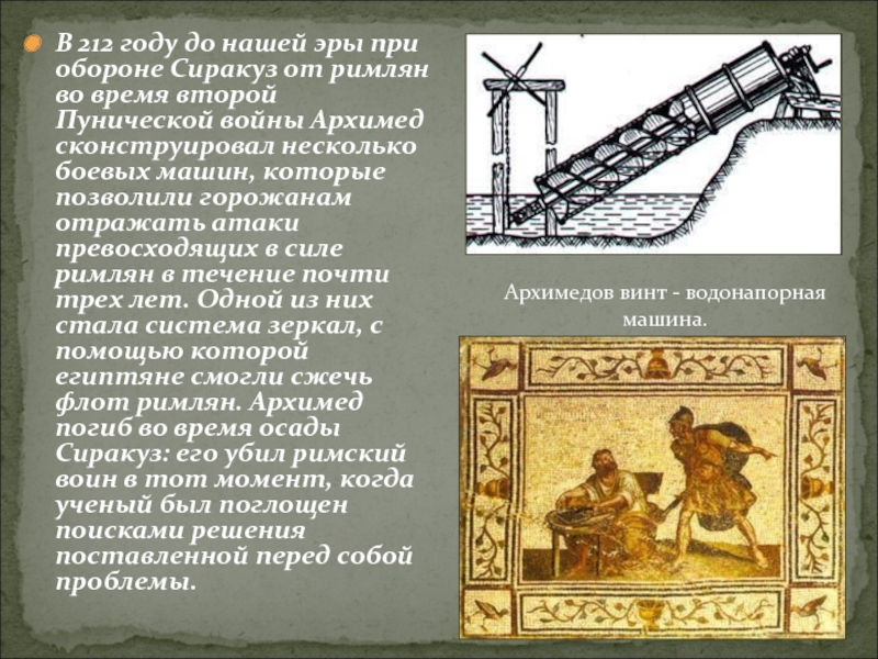Слайд 9В 212 году до нашей эры при обороне Сиракуз от римлян