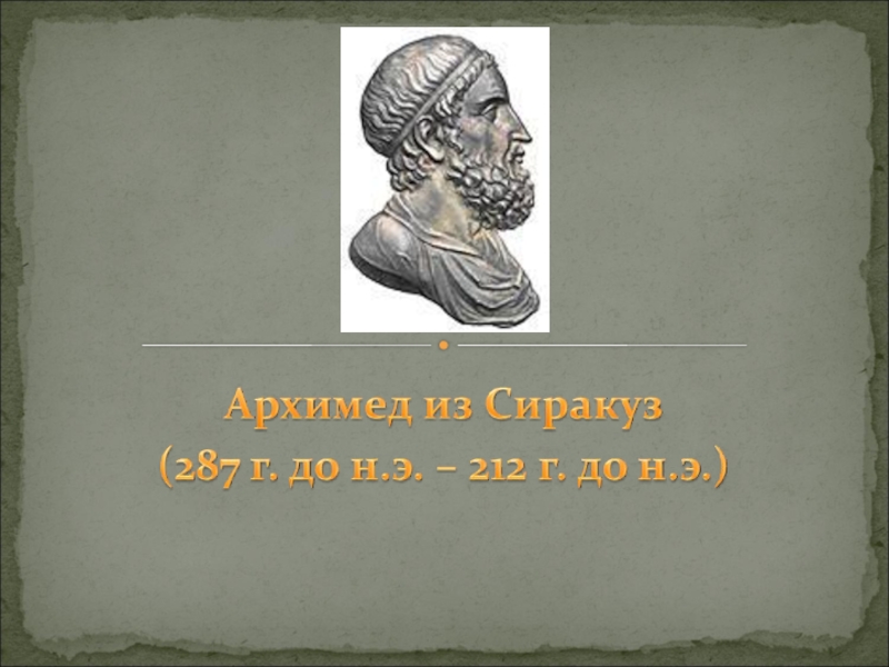 Слайд 3Архимед родился в 287 году до нашей эры в греческом городе
