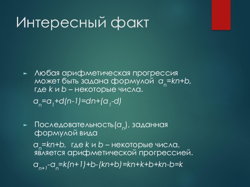 Если в арифметической прогрессии разность отрицательна (d<0), то прогрессия является убывающей.