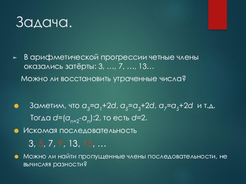 Можно ли найти пропущенные члены последовательности, не вычисляя разности?