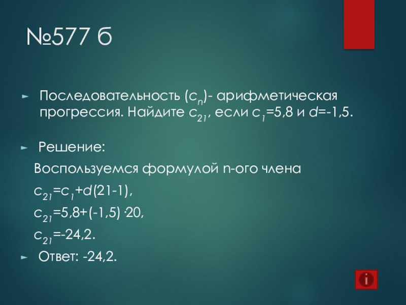 В случае , если разность равна нулю (d=0) и все члены прогрессии равны одному и тому же числу, последовательность называется стационарной.
