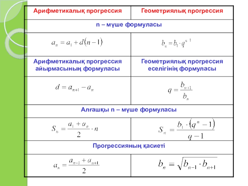 Арифметикалық және геометриялық прогрессиялардың алғашқы