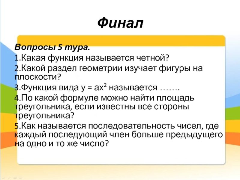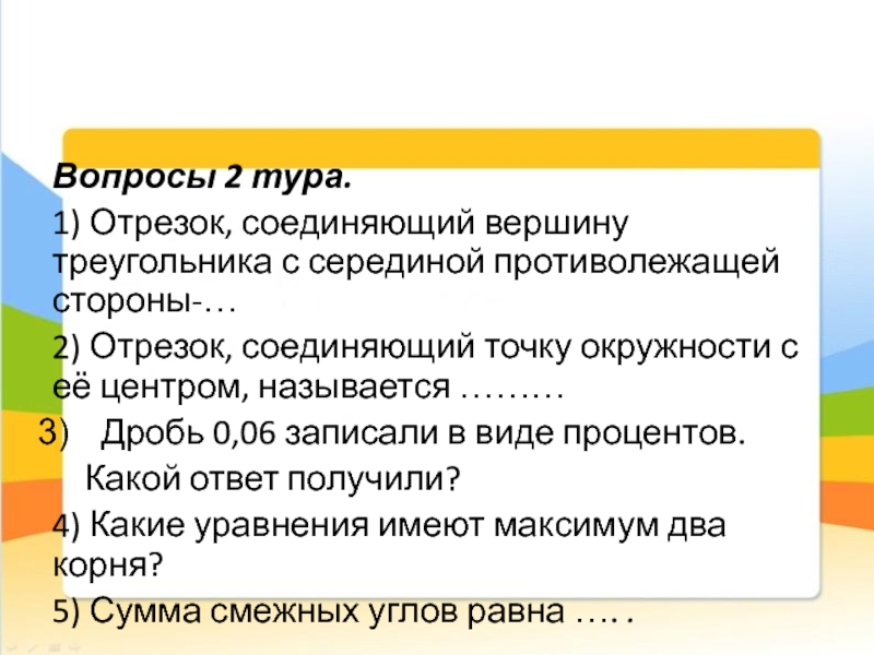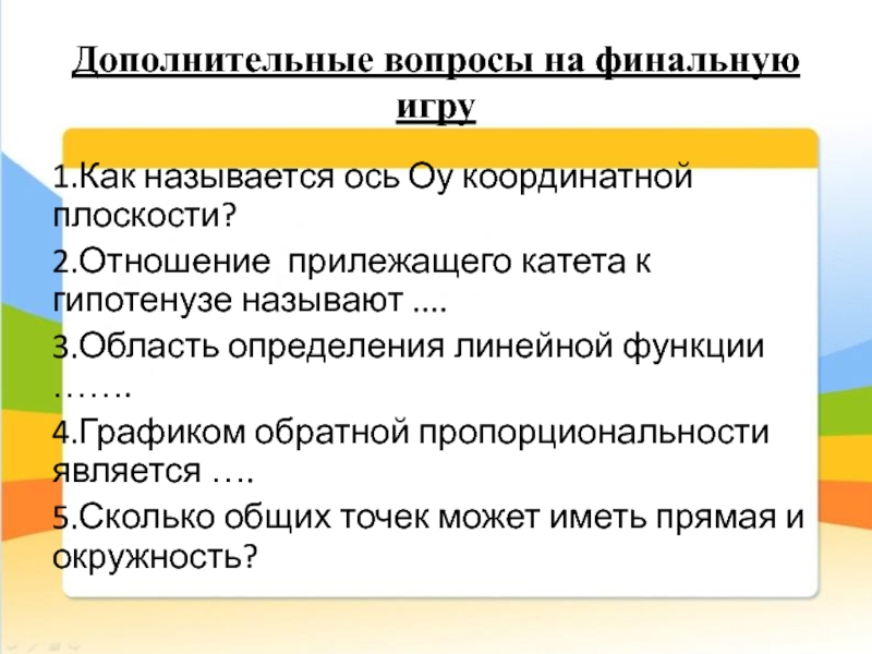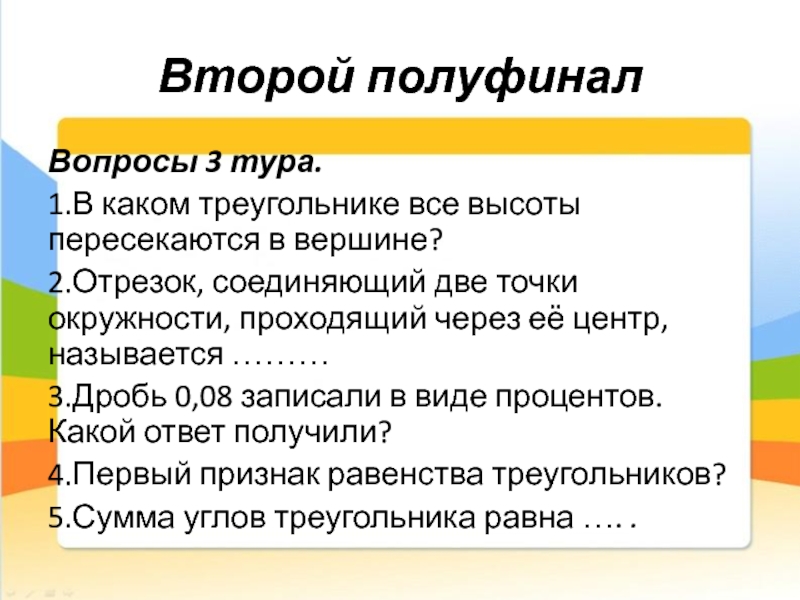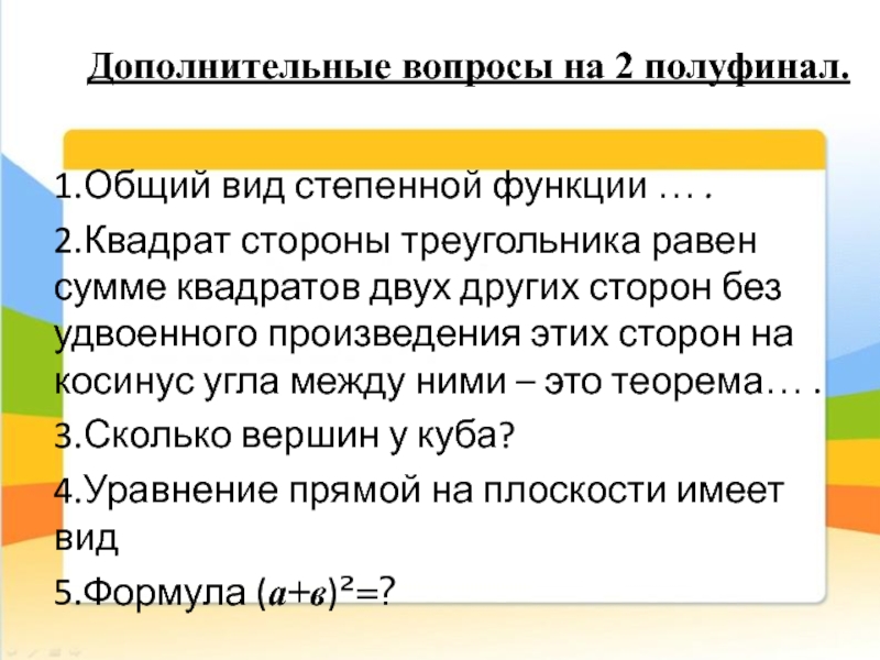 Слайд 10Дополнительные вопросы на 2 полуфинал.
