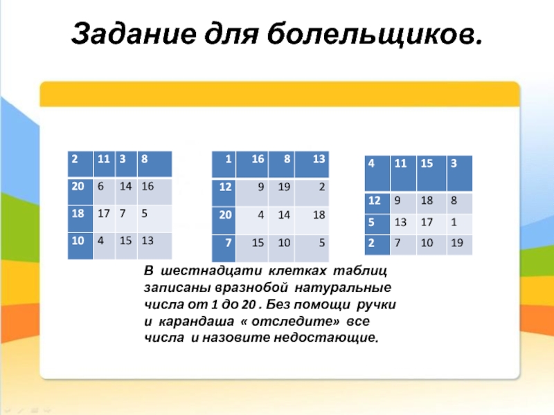 В шестнадцати клетках таблиц записаны вразнобой натуральные числа