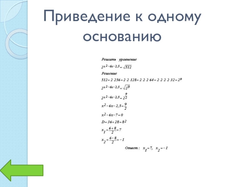 Слайд 7Приведение к одному основанию