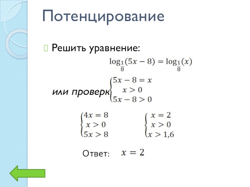 Потенцирование Решить уравнение: