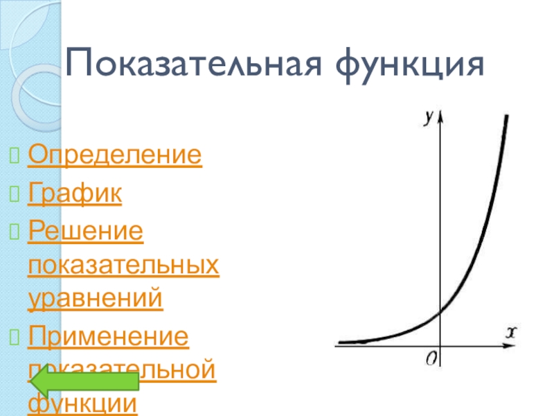 Показательная функцияОпределениеГрафикРешение показательных уравненийПрименение показательной функции
