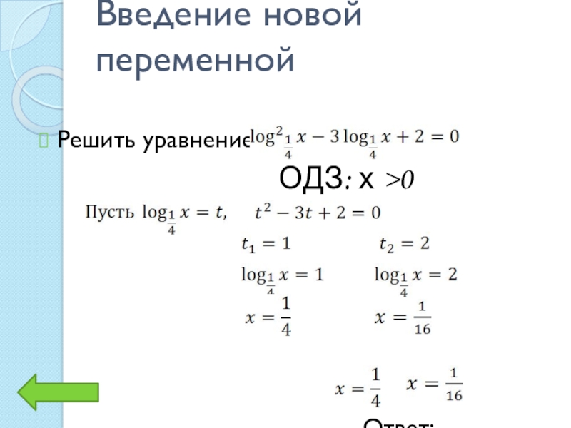 Введение новой переменной Решить уравнение: