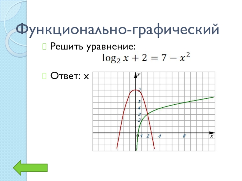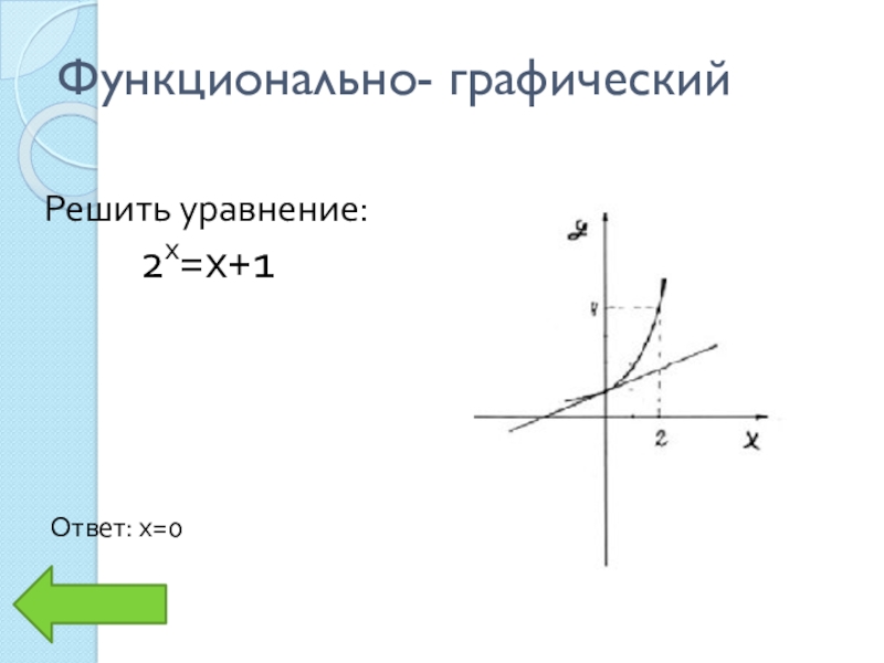 Функционально-графическийРешить уравнение:Ответ: х = 2