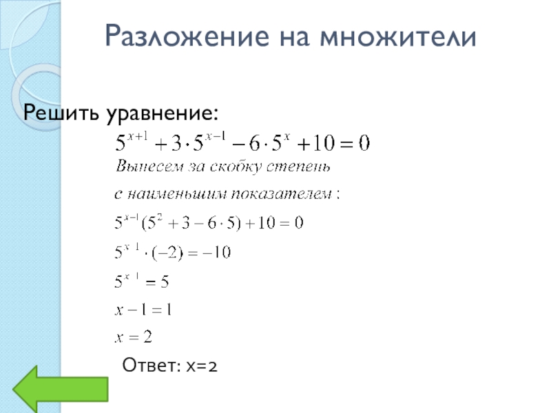 Разложение на множителиРешить уравнение:Ответ: х=2