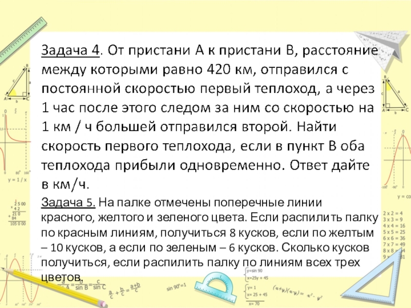 Слайд 12Задача 5. На палке отмечены поперечные линии красного, желтого и зеленого