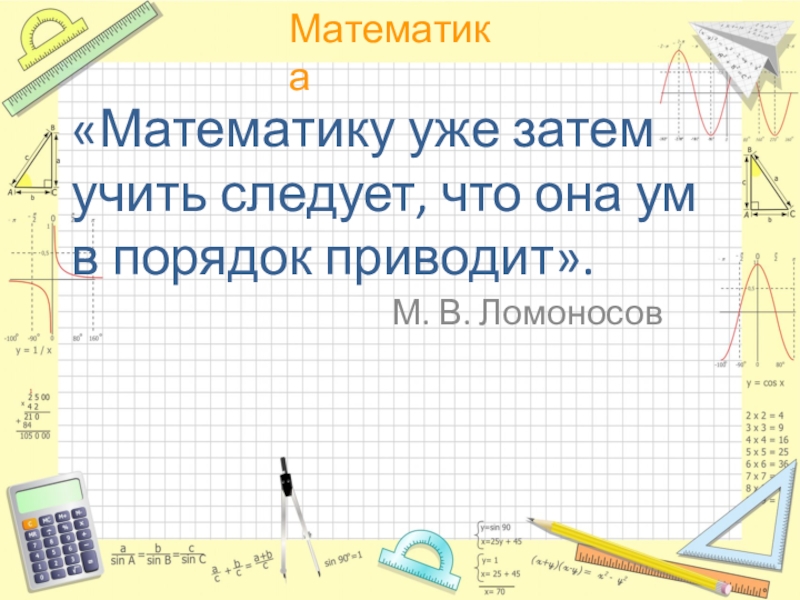 «Математику уже затем учить следует, что она ум в порядок приводит».М. В. Ломоносов