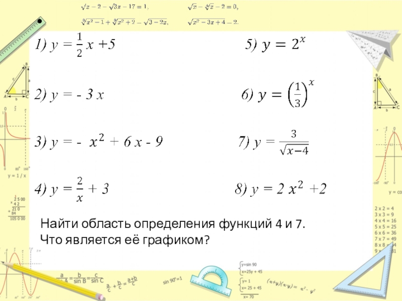 Слайд 7Найти область определения функций 4 и 7.
