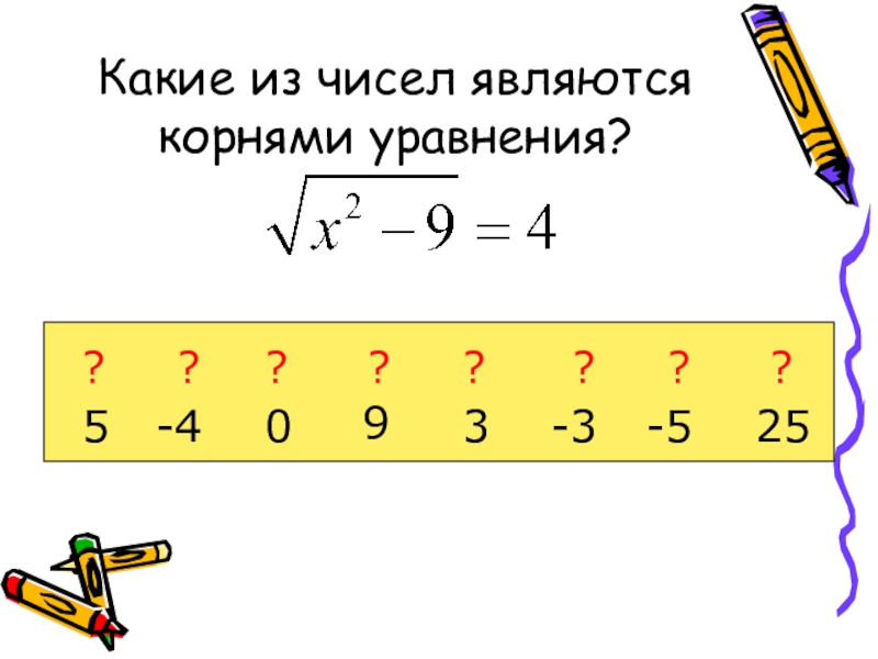 Какие из чисел являются корнями уравнения?5-4093-3-525????????