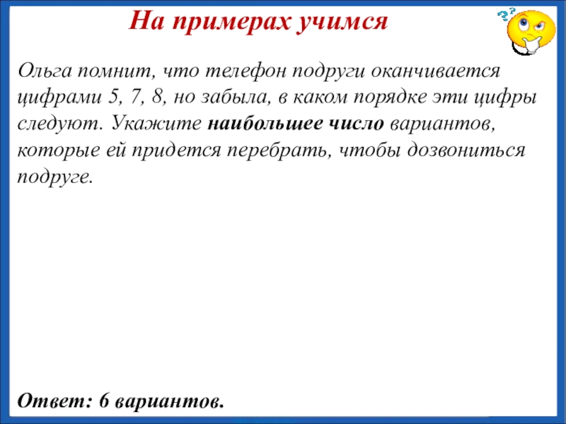 1. Сколько существует вариантов рассаживания вокруг дачного домика 8 различных деревьев в восемь подготовленных ям?