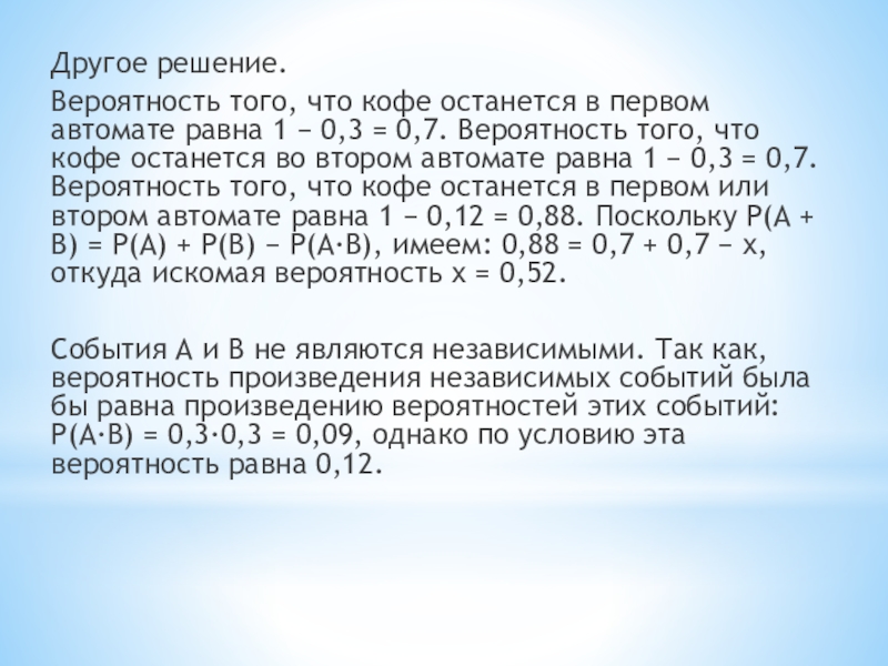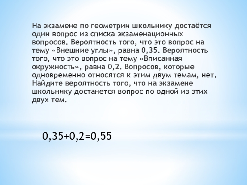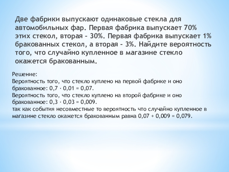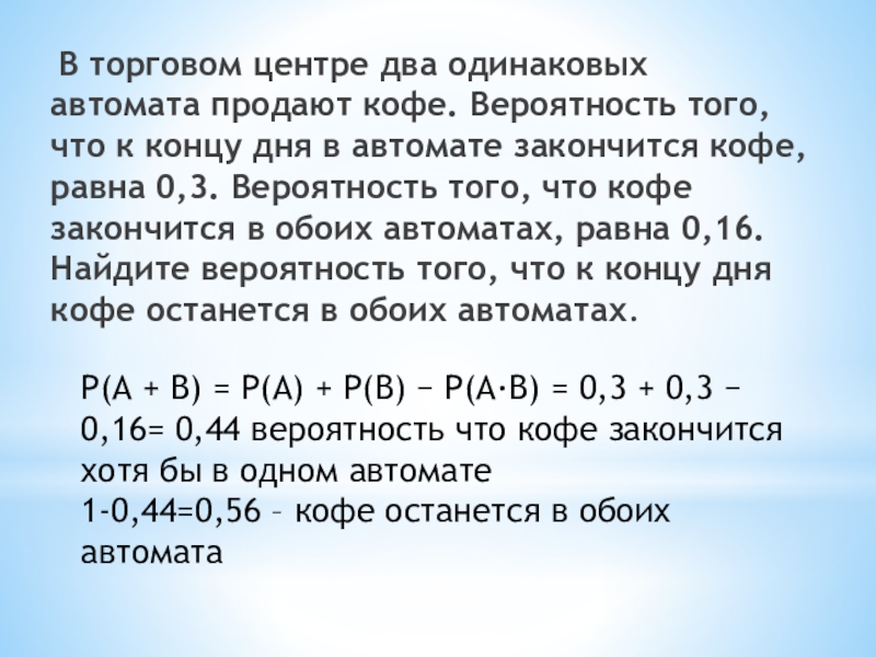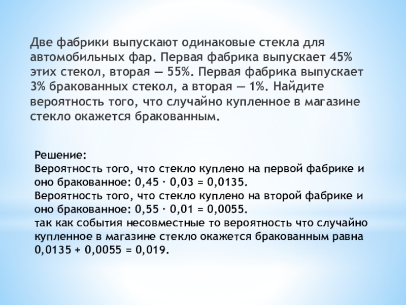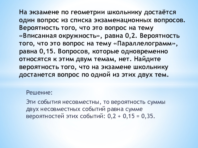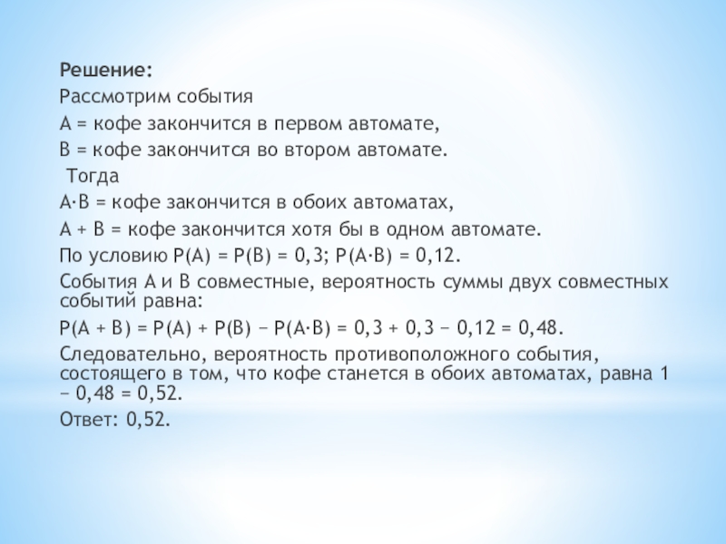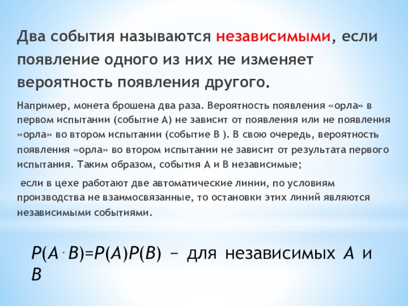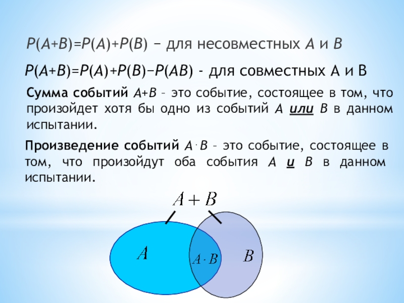 События А и В, связанные с некоторым опытом, называются несовместными, если не существует испытания, при котором реализуются оба события.