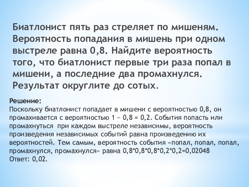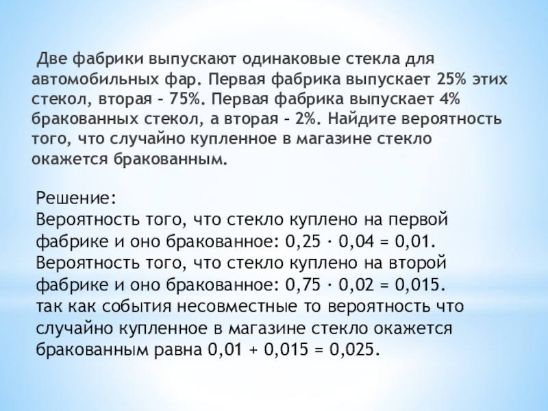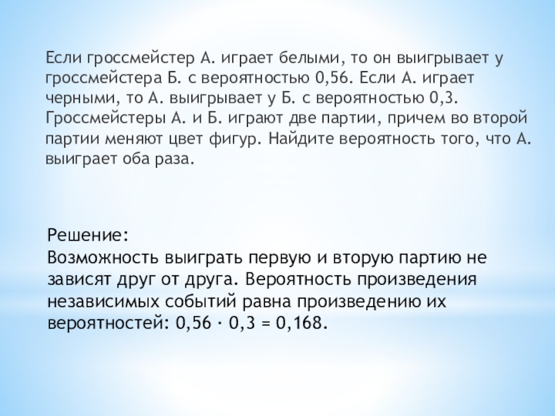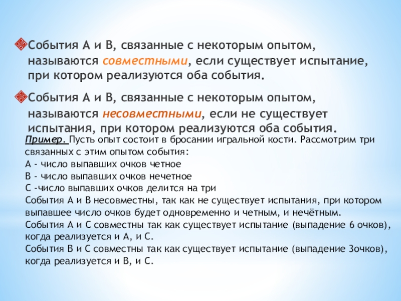 Пример. Пусть опыт состоит в бросании игральной кости. Рассмотрим три связанных с этим опытом события: