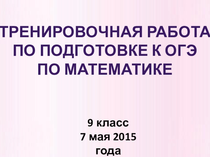 Презентация, доклад для подготовке к ОГЭ по математике Тренировочная работа. 7.05.2015 .