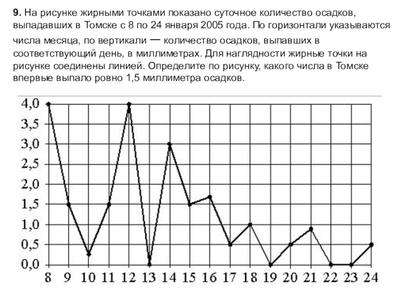 Слайд 109. На рисунке жирными точками показано суточное количество осадков, выпадавших в