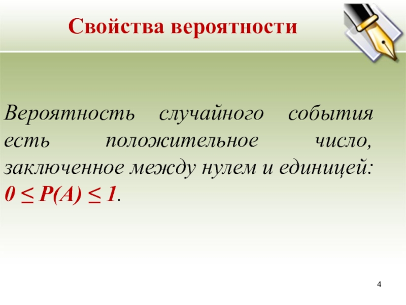 Вероятность случайного события есть положительное число, заключенное между нулем и