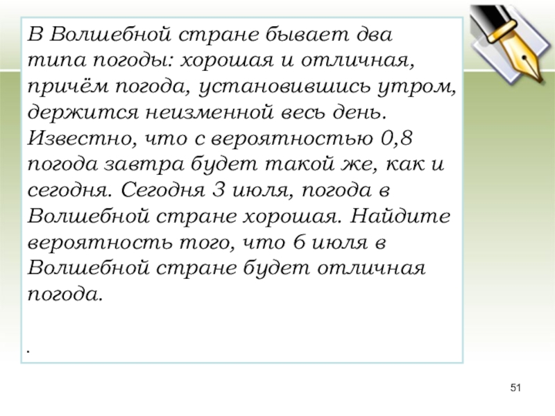 Слайд 51В Волшебной стране бывает два типа погоды: хорошая и отличная, причём