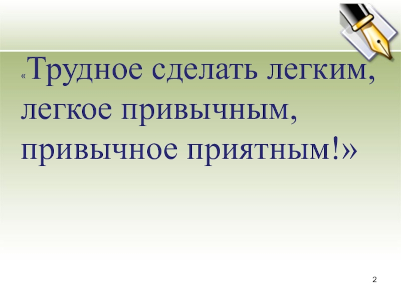 Слайд 2«Трудное сделать легким, легкое привычным, привычное приятным!»