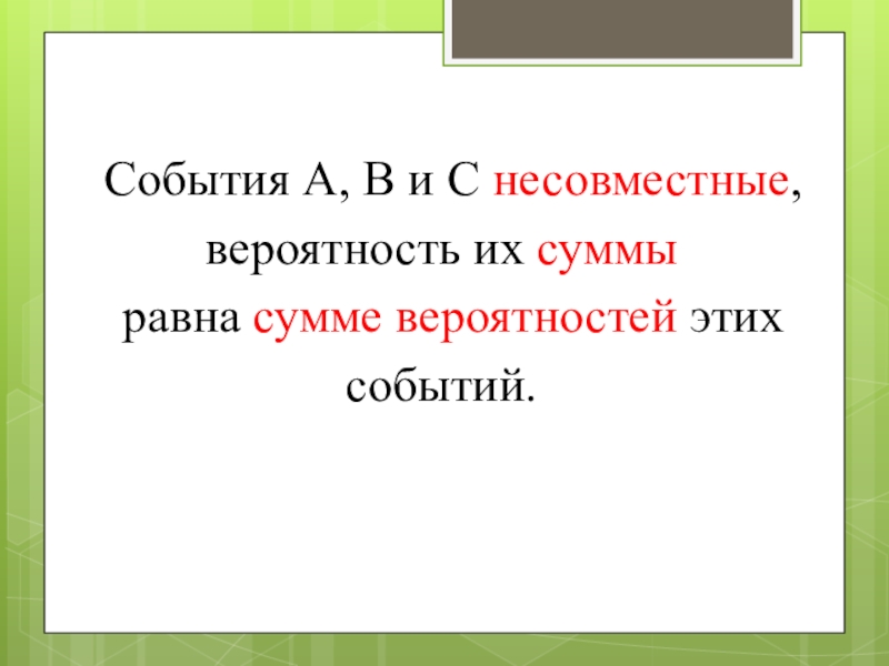 P(A + B+ С) = P(A) + P(B)+ P(С)= P(A) + P(B),