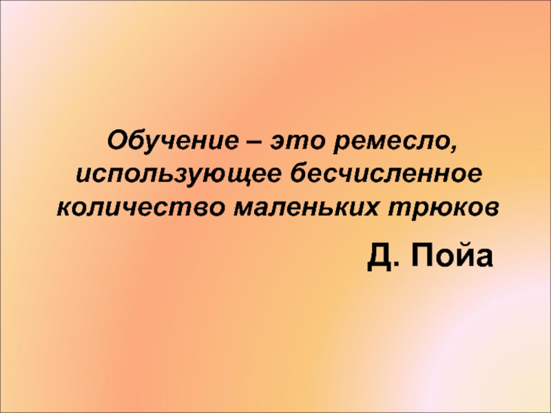 Слайд 2 Обучение – это ремесло, использующее бесчисленное количество маленьких трюков