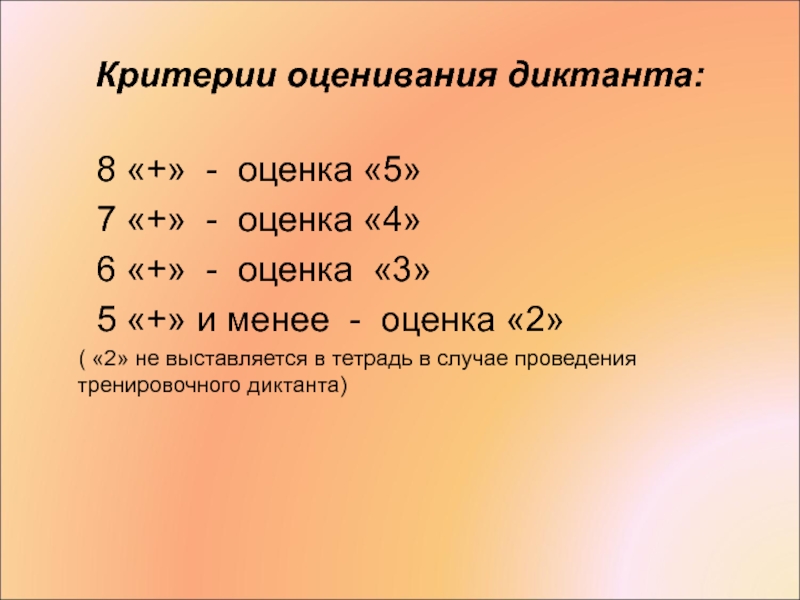 ( «2» не выставляется в тетрадь в случае проведения тренировочного диктанта)