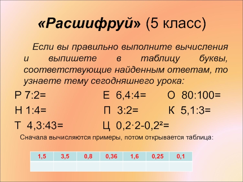 выпишете в таблицу буквы, соответствующие найденным ответам, то узнаете тему сегодняшнего урока: