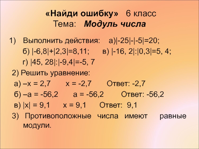 в) |х| = 9,1 х = 9,1 Ответ: 9,1