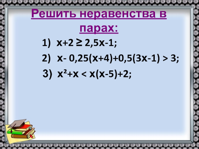 0,2(2х+2)-0,5(х-1)<2 0,4х +0,4 -0,5х +0,5 <2