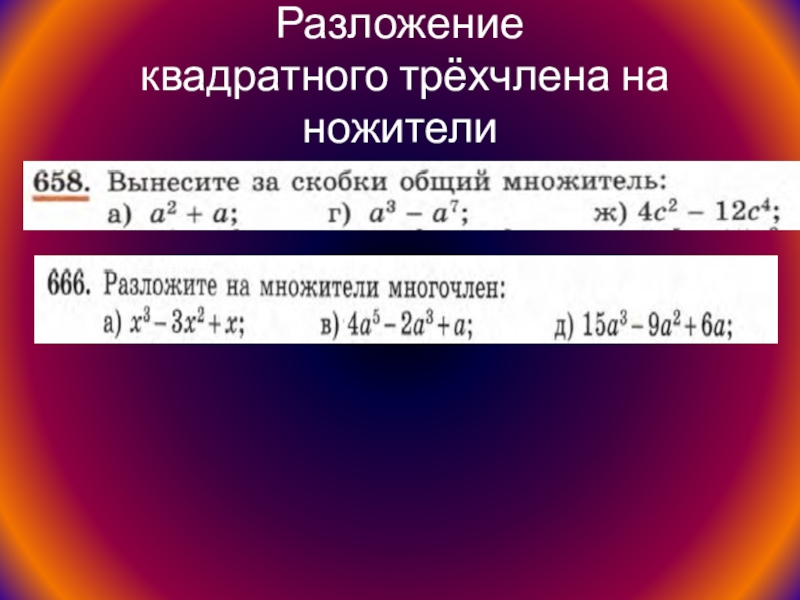 Слайд 3Разложение квадратного трёхчлена на ножители