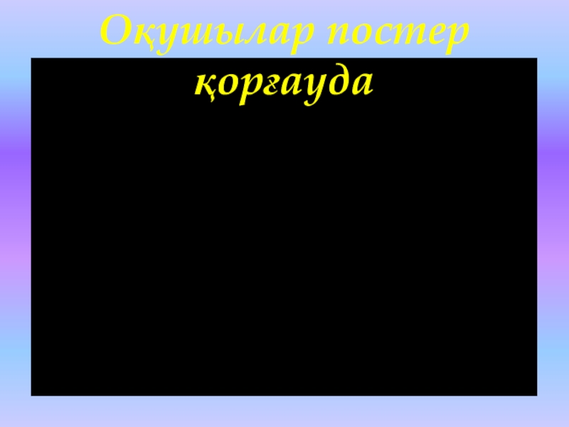 Слайд 9Оқушылар постер қорғауда