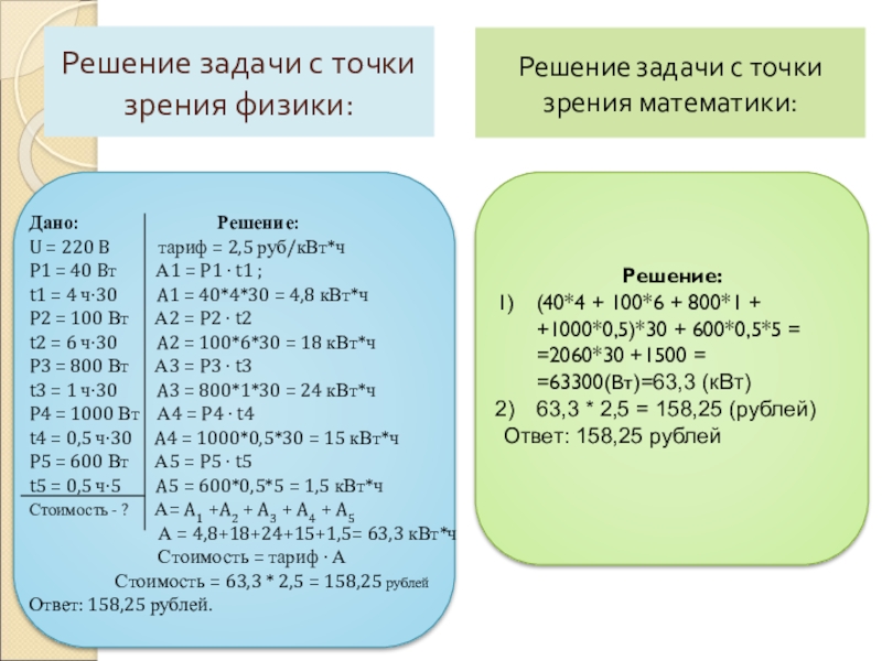 Вычислить общее потребление электроэнергии всеми приборами в течении месяца по формуле: А= A1 +A2 + A3 + A4 + A5