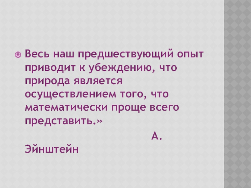 Весь наш предшествующий опыт приводит к убеждению, что природа является осуществлением