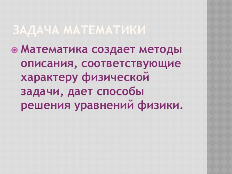 Математика создает методы описания, соответствующие характеру физической задачи, дает способы
