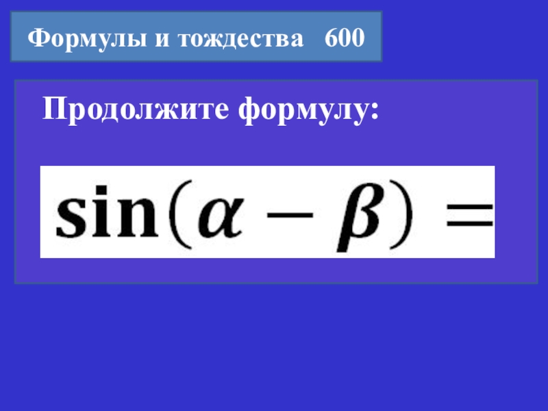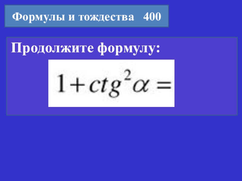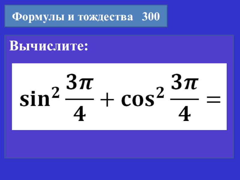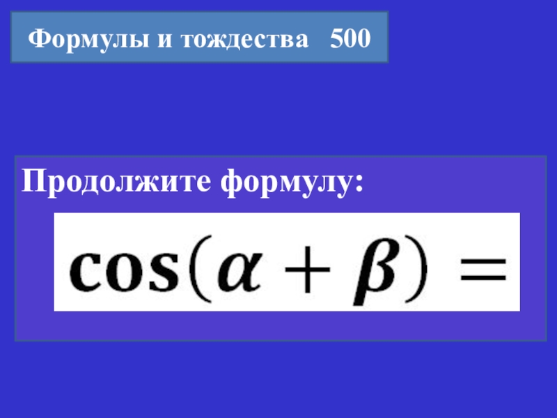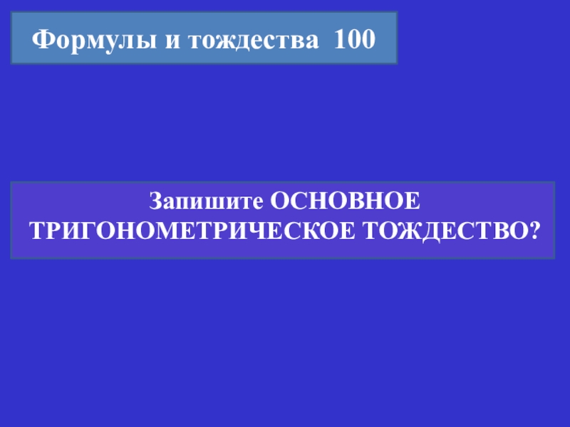 Формулы и тождества 100Запишите ОСНОВНОЕ ТРИГОНОМЕТРИЧЕСКОЕ ТОЖДЕСТВО?