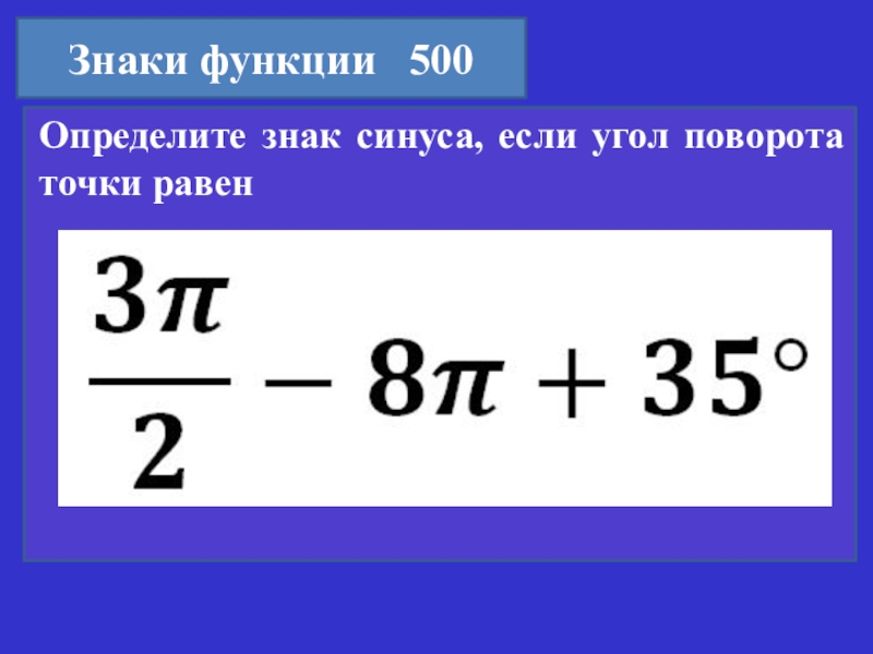 Знаки функции  500Определите знак синуса, если угол поворота точки равен