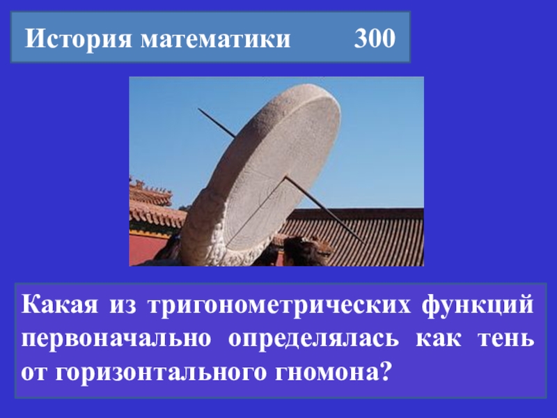 История математики     300Какая из тригонометрических функций первоначально определялась как тень от горизонтального гномона?