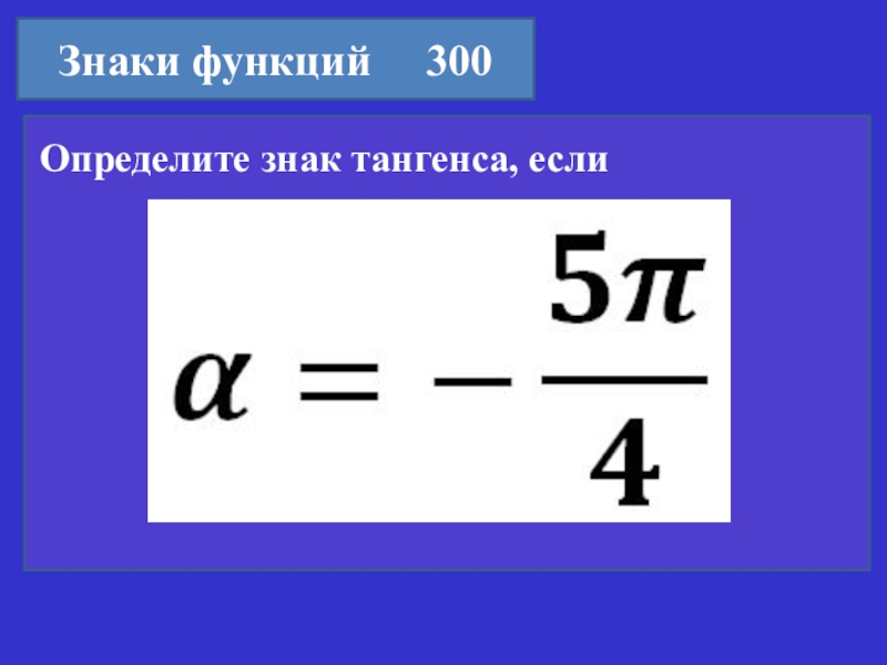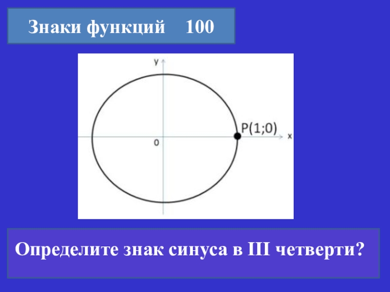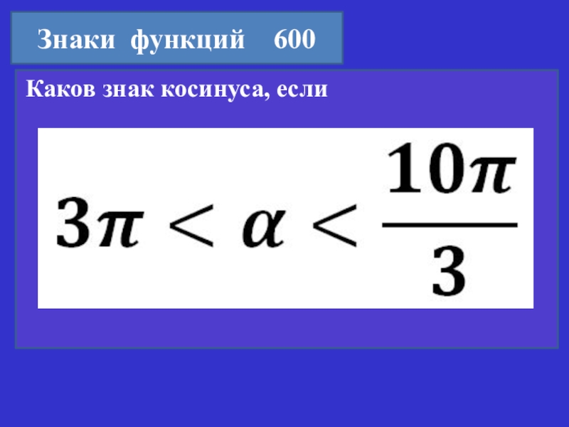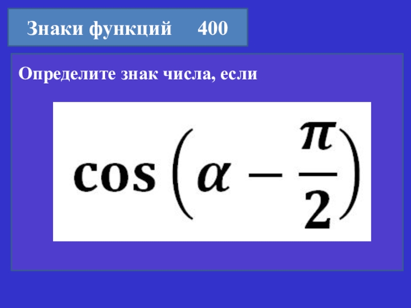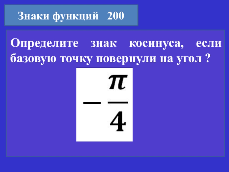 Знаки функций  200Определите знак косинуса, если базовую точку повернули на угол ?