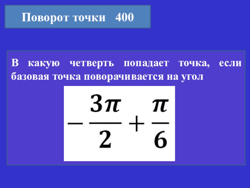 Поворот точки  400В какую четверть попадает точка, если базовая точка поворачивается на угол
