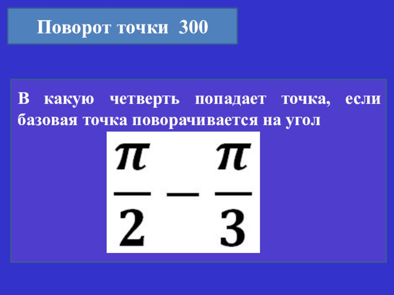 Поворот точки 300В какую четверть попадает точка, если базовая точка поворачивается на угол