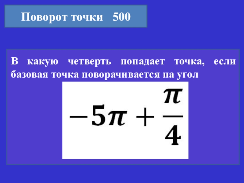 Поворот точки  500В какую четверть попадает точка, если базовая точка поворачивается на угол