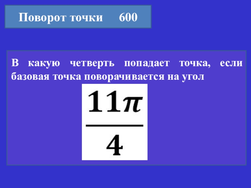 Поворот точки   600В какую четверть попадает точка, если базовая точка поворачивается на угол