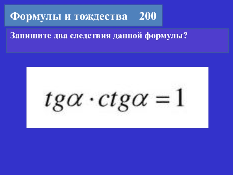 Формулы и тождества  200Запишите два следствия данной формулы?
